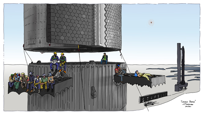 SEO: spacex, space, launch, lunch, lunch break, dragon, falcon, inspiration4, elon musk, workers, welders, welder, welding, metalworking, crew, biomechatronics, biomechanical, biomech, robot, android