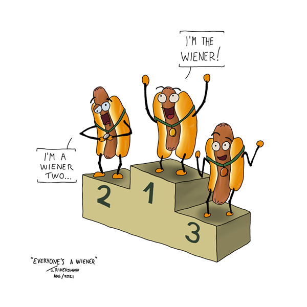 SEO: wiener, sausage, hot dog, winner, olympics, podium, medals, funny